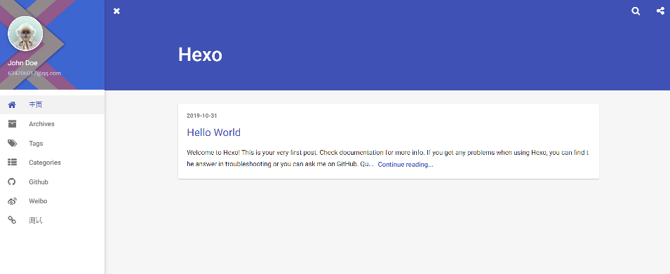 下载和更换indigo主题 https://github.com/yscoder/hexo-theme-indigo
