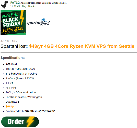 黑五节,国外主机基本都搞活动。所以,晚上无聊就在群里吹水看闪购监控。买了两台服务器,一个hosthatch大盘鸡,一个SpartanHost性能鸡。这篇文章介绍SpartanHost: $48/yr 4GB 4Core Ryzen KVM VPS from Seattle